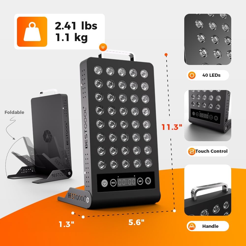 BestQool Red Light Therapy, Dual Chip 660nm 850nm Clinical Grade Red Light Therapy for Face, Portable Infrared Light Therapy for Body, Pain Relief, Muscle Fast Recovery. 50W.