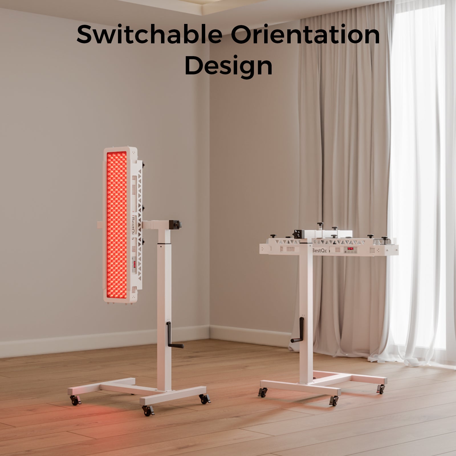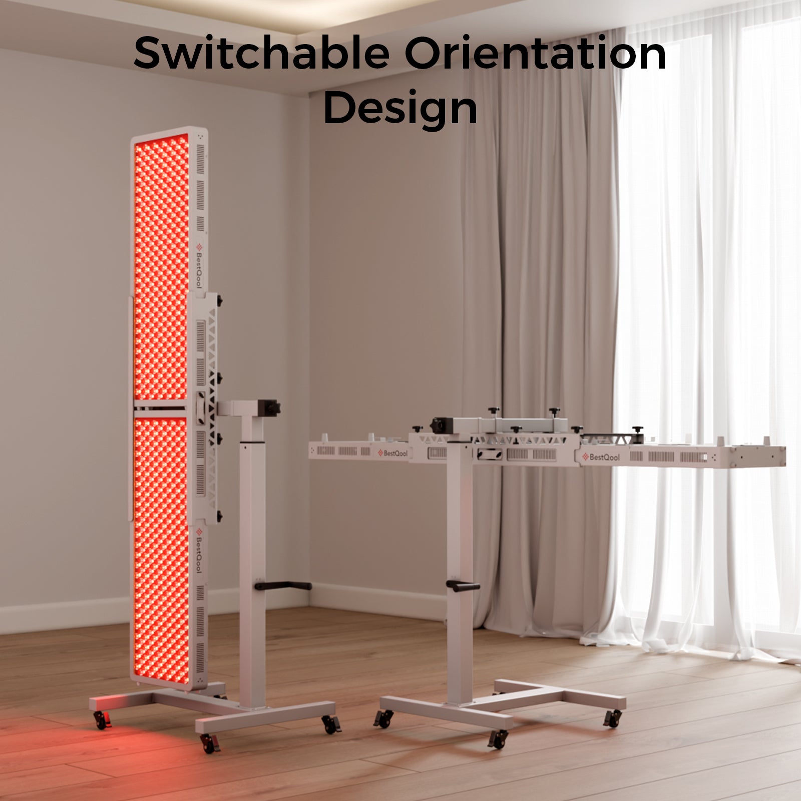 Supports your BestQool panels horizontally or vertically for full-body red light therapy—ideal for home, office, or gym. Lie under horizontal panels on a bed, couch for head-to-toe treatment, or stand in front of vertical panels for full-body or targeted therapy. Enjoy private, clinical-grade results anytime, anywhere.